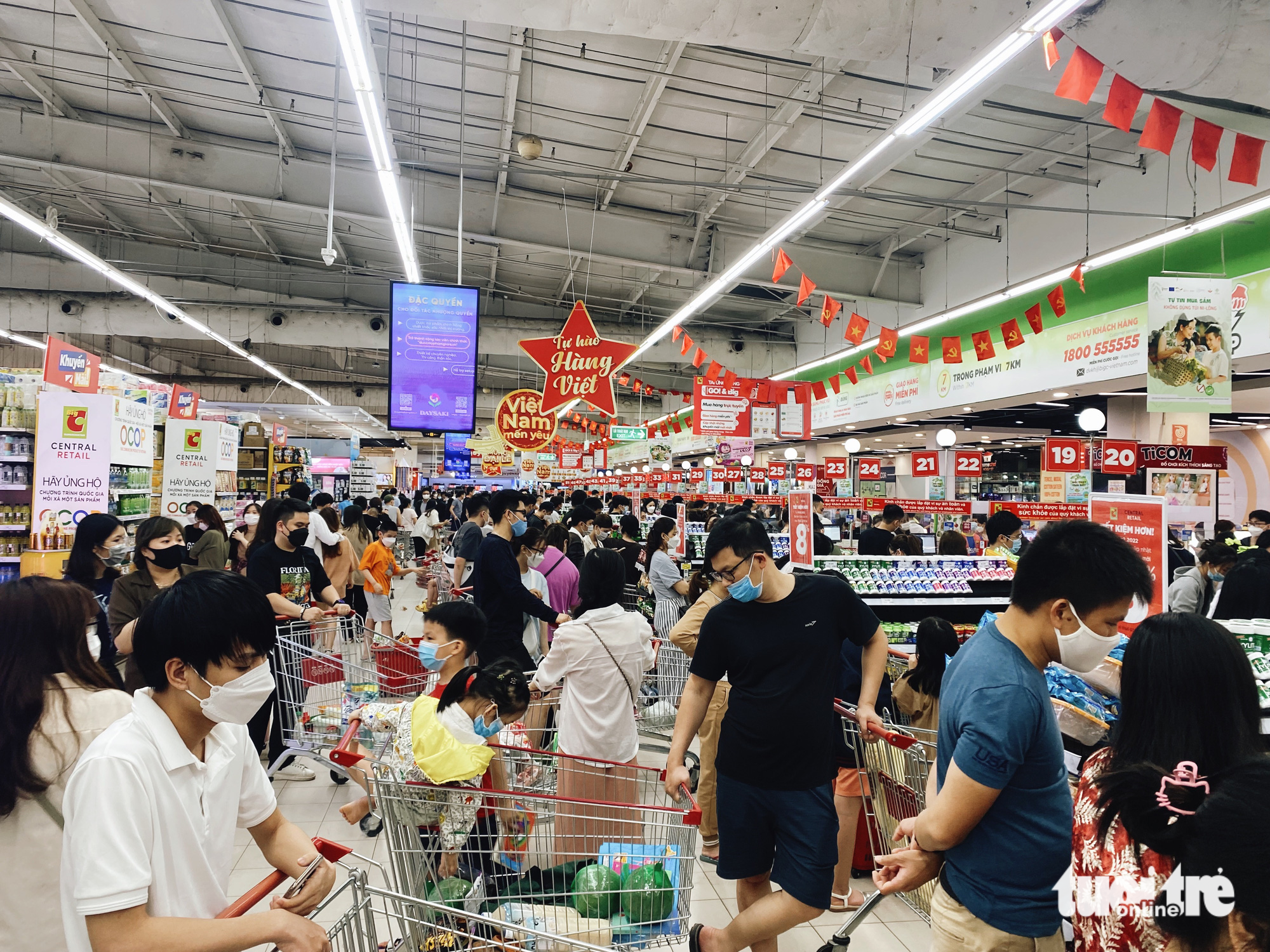 Người Hà Nội đeo khẩu trang khi đi mua sắm tại một siêu thị - Ảnh: PHẠM TUẤN